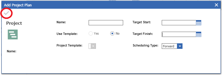 The first would be to simply flag your new property as Required on the Project ItemType. This won't prevent users from closing that initial dialog, but it will prevent users from saving and actually creating the new Project from the main form. The Project isn't actually saved to the database when you click the green check mark on the dialog. The fields required there undergo additional validation for the purposes of calculating the schedule of the Project.