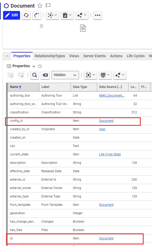 In the system the "Id", and "config-id" are the item name. For Document item, the id is the document name(screenshot below). I need the id property, the one that is unique, to be added to the properties of Document item.