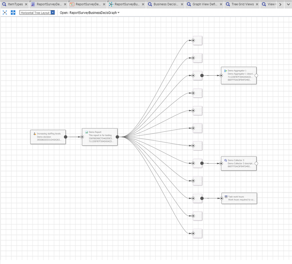 I am attempting to use a Graph View for a recursive data structure with Poly items. For example, a Report item can be related to a Report_Source poly item, which can be a Report, Data, Collector or Aggregator, each of which can also contain a Report_Source relationship.