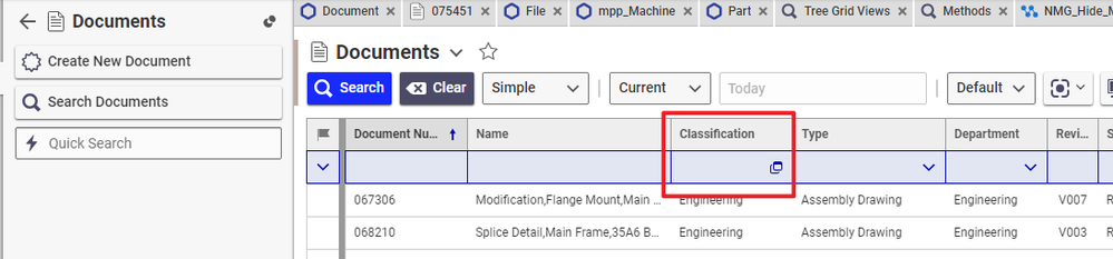 I have a code for finding the identity of the user. I need to know how to target the "Classification" field of "Document" item type in the search grid view