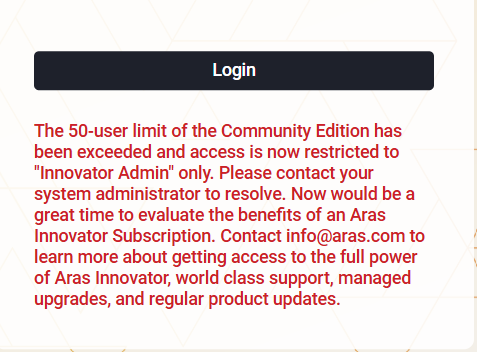 This creates a highly problematic situation for any open release user who relied on the promise of “50 enabled users.” Innovator becomes unusable the moment custom user #45 is added. If the administrator is unaware of this limitation, the system may suddenly become inaccessible for everyone else - without warning - and resolving the issue is extremely difficult.