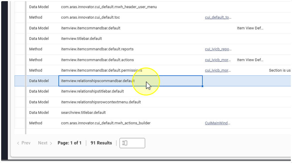 - In the CommandBarSection tab, open itemview.relationshipscommandbar.default and click Edit.