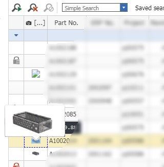 My users want to be able to hover over (mouse over) these rows and display in a small popup the thumbnail for each part as they move.