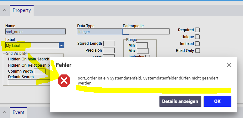 But in my current sort_order property, I literally can change nothing, not even the label. I always get the following error message: