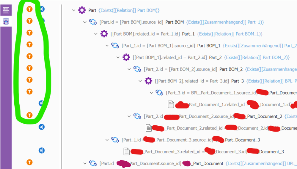 let´s assume we have a multilevel BOM with many Parts. Some of them have Documents attached. There are Documents on level 0, 3 and 7 of the BOM. I want to have an tree-like overview of the Parts and the Documents, but I don´t want to display the Parts with no documents.