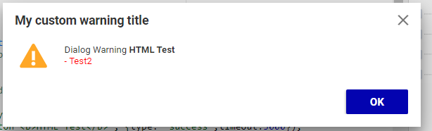 I made various dialog tests and noticed that standard "alerts" allow us to use html with custom styling inside the text.