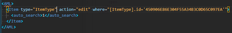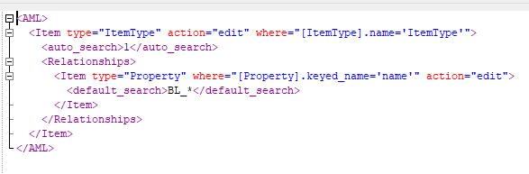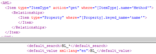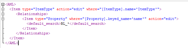 Now, if I could only identify the AML representation to update the IType -> Properties -> name "Default Search"... oh, Properties is a Relationship, right? I'll start there.