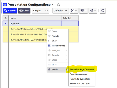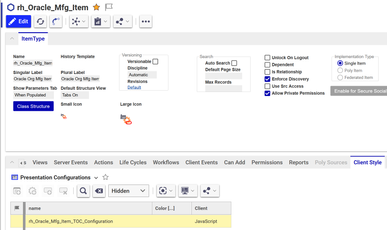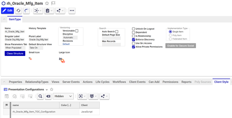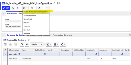 2) Double clicked on on the [Presentation Configuration] in the Grid; "rh_Oracle_Mfg_Item_TOC_Configuration"