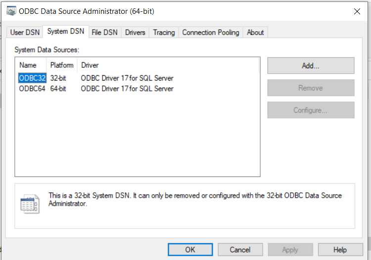 In the ODBC Data Source Administrator, go to the "System DSN" tab.