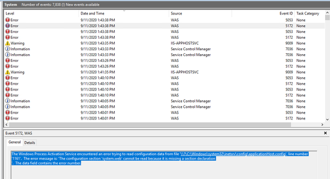 Ugh I'm back to this other terrible error, it won't start up IIS