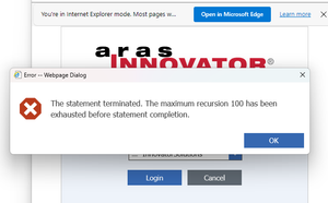 We are using a stand-alone server currently until we get ARAS fully stood up, then we will go live. We received the feature license keys and went to activate feature key but we keep receiving the pictured error below. It also pops up upon entering our database. Has anyone seen the below error before?1.9KViews0likes4CommentsThe statement terminated. The maximum recursion 100 has been exhausted before statement completion.